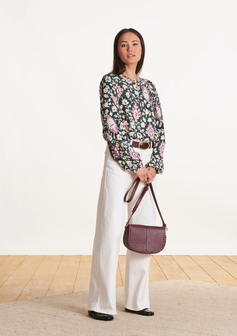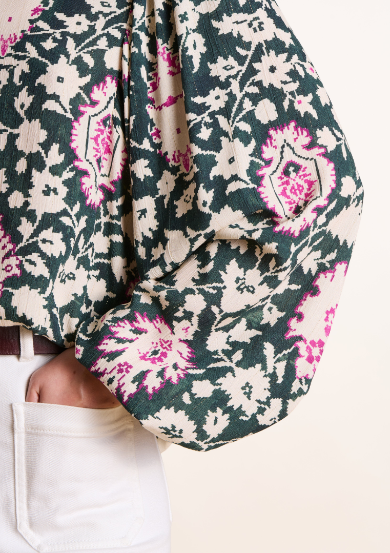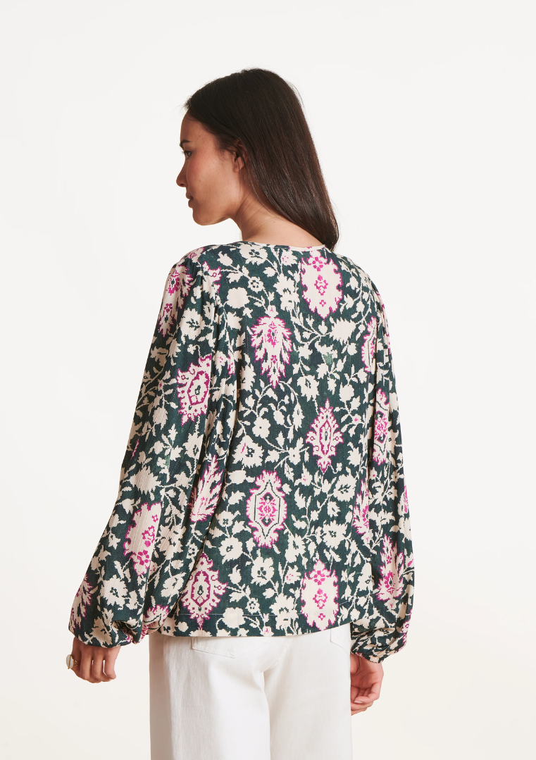 Top ETANO vert foncé ample manches longues à imprimé
